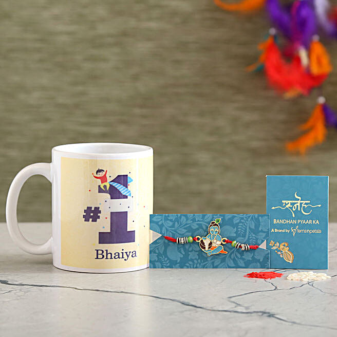 Bal Krishna Kids Rakhi And No 1 Bhaiya Mug Combo