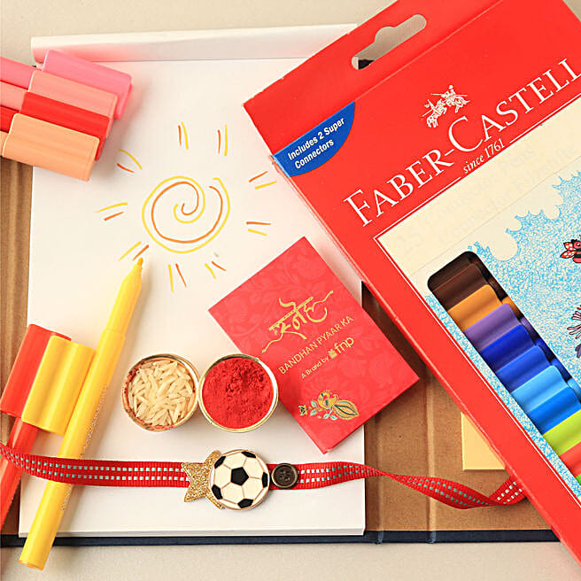 Sneh Cute Football Rakhi & Faber Castell