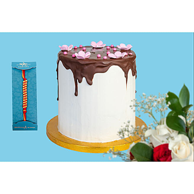 Pink Cherry Blossoms Red Velvet Cake & Sneh Mauli Rakhi