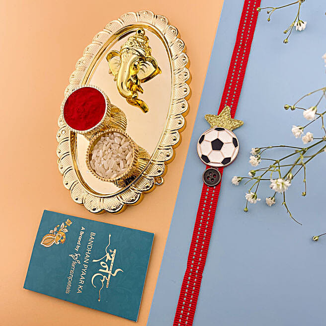 Sneh Football Star Kids Rakhi & Ganesha Pooja Thali