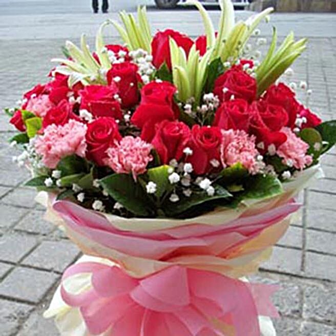 Rainbow Rose And Carnations Bouquet