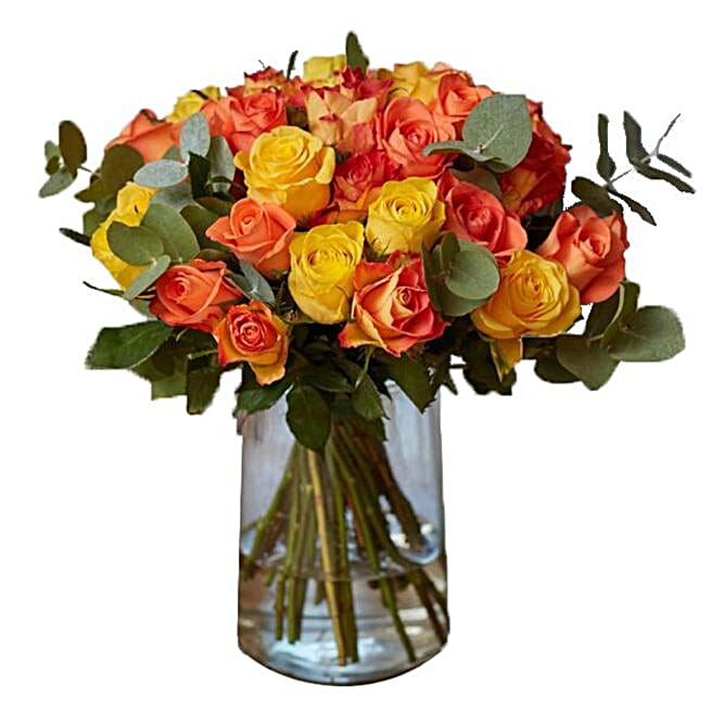 Charismatic Orange And Yellow Roses Bouquet