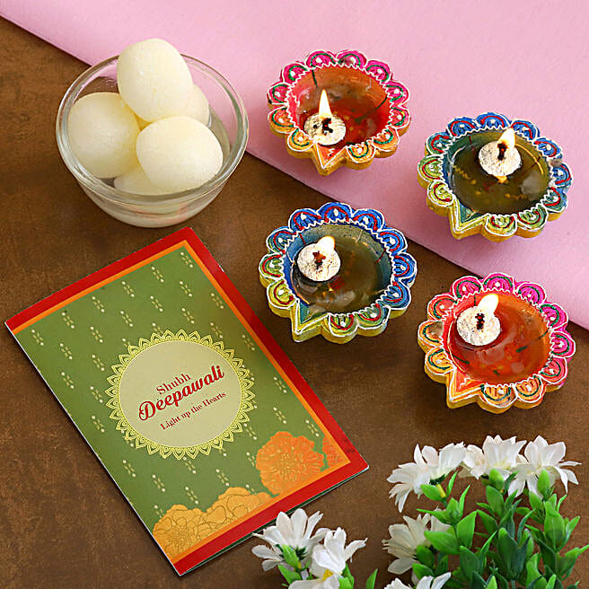 Decorative Diwali Diyas With Rasgulla