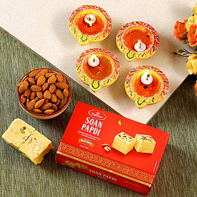 Designer Diwali Diyas With Almonds And Soan Papdi