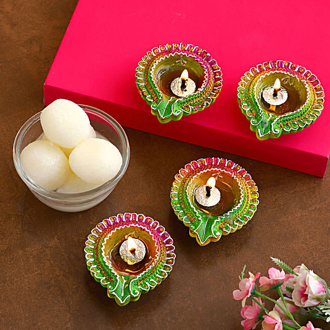 Diwali Floral Diyas With Rasgulla