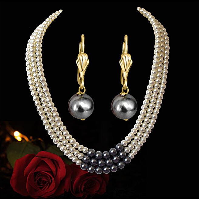 2 Line Pearl Necklace & Earrings Set