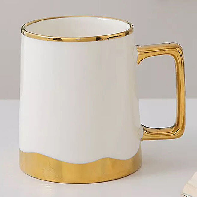 3D Ceramic Glossy Finish Golden White Coffee Mug