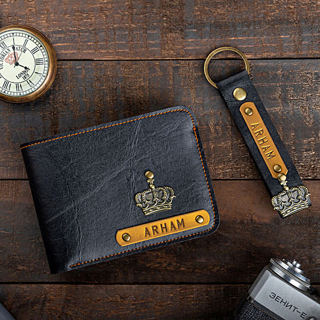 Black Personalised Wallet & Keychain