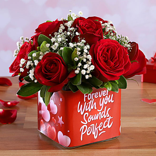 Bunch Of 10 Red Roses In Forever With You Sticker Vase