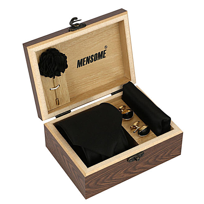 Microfiber Neck Tie & Lapel Pin Gift Set- Black