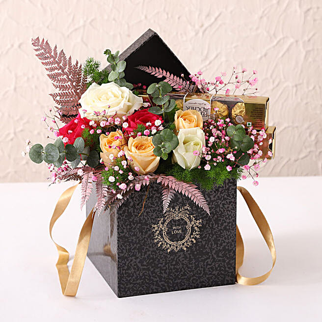 Ferrero Rocher & Mixed Roses Black Box