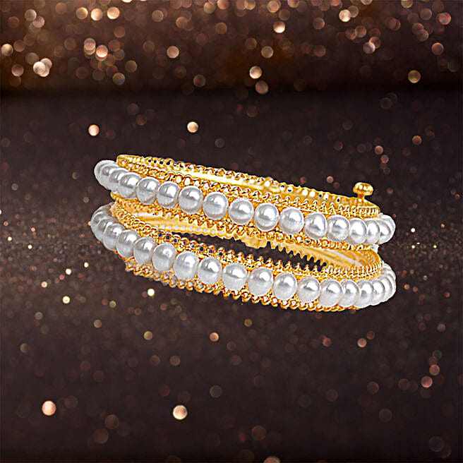 Freshwater Pearl & Gold Plated Bangles With Screw