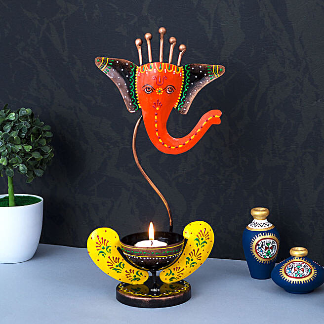 Ganesha Metal Tea Light Candle Holder