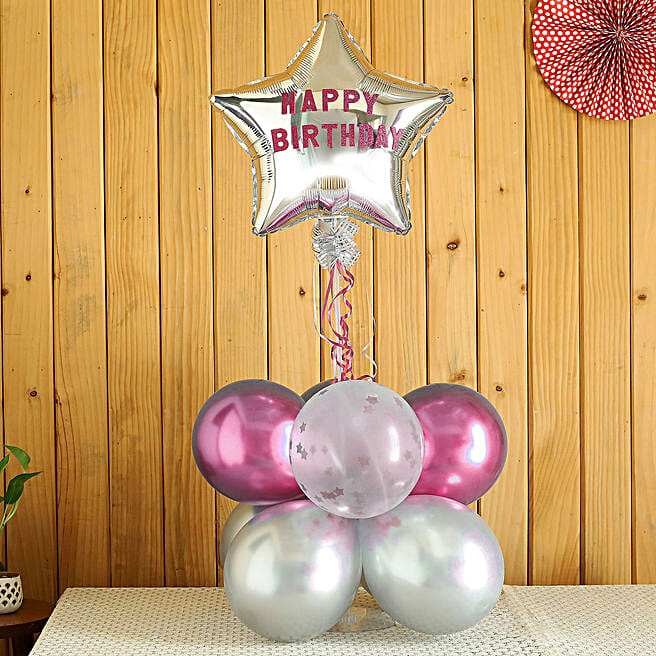 Happy Birthday Star Balloon Bouquet- Silver & Pink