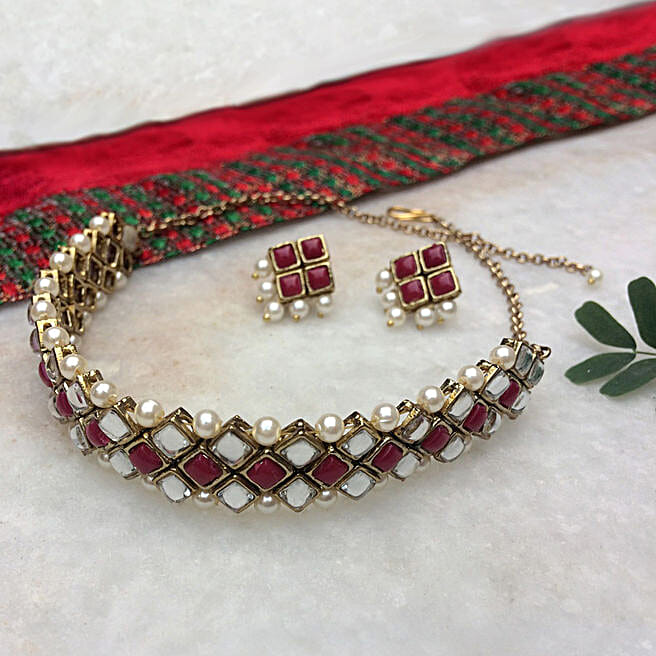 Paya Kundan Marsala Stone Choker Necklace Set