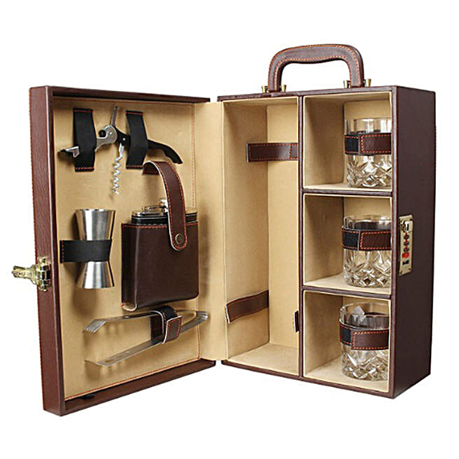 Leatherette Briefcase Bar Set for Travel