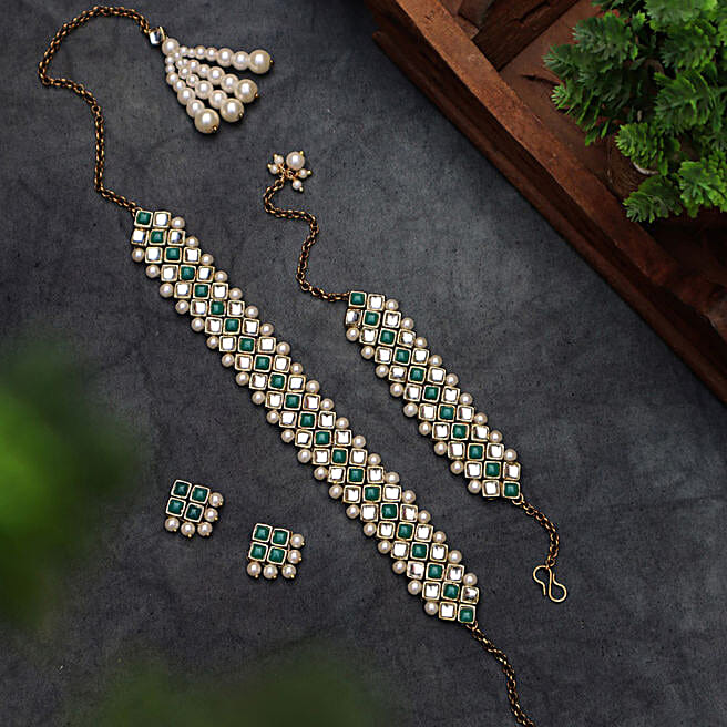 Paya Kundan Work Choker Necklace Set With Bracelet