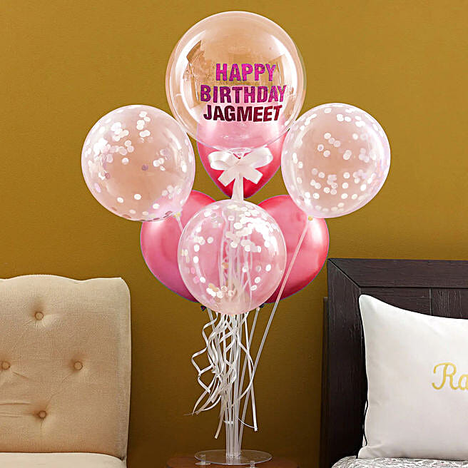 Personalised Glittery Birthday Balloon Bouquet- Silver & Pink