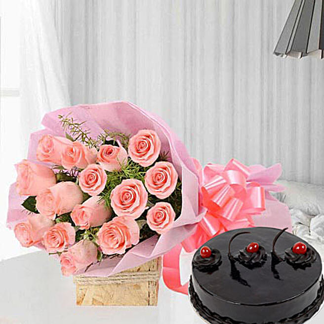 Pink Roses 15 with Cake Eggless