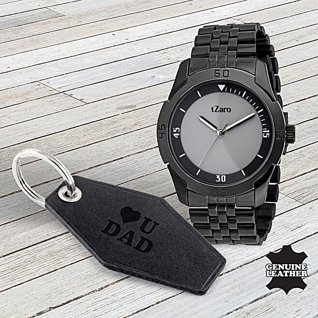 Stainless Steel Watch & Keychain Combo