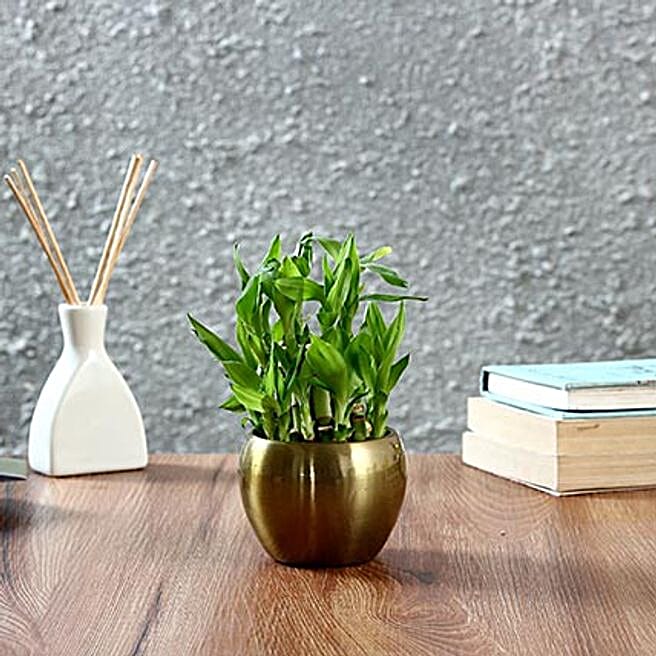 Two Layer Bamboo Plant in Copper Orchid Metal Pot