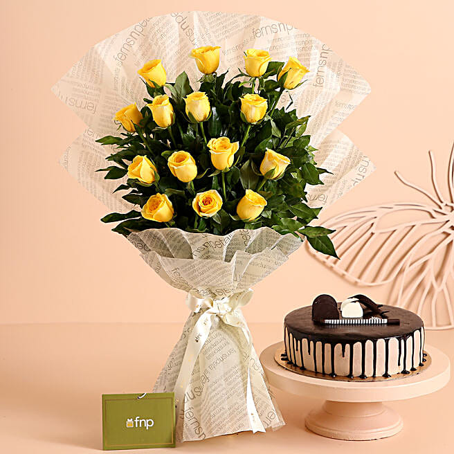 Vibrant Feelings Roses Bouquet & Chocolate Cake