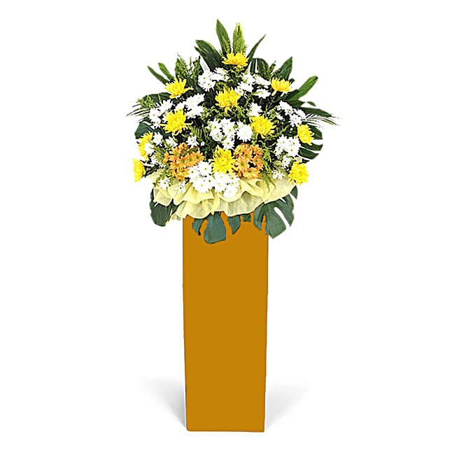 Vibrant Mixed Flowers Brown Stand Arrangement