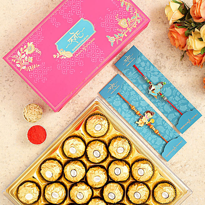 Devotional Kids Rakhi Set And 16 Pcs Ferrero Rocher