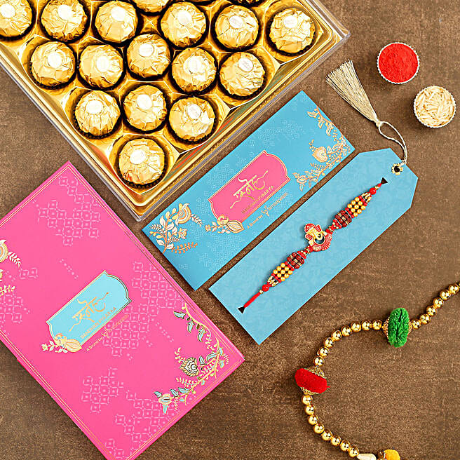 Ganesha And Rudraksha Rakhi With 16 Pcs Ferrero Rocher