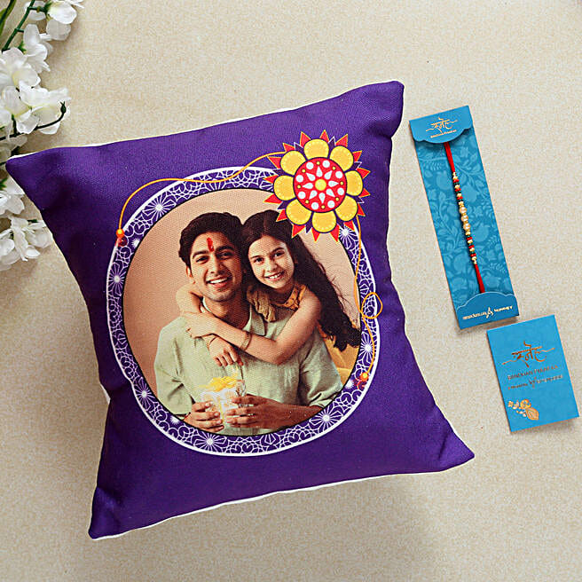Pearl Rakhi And Personalised Cushion