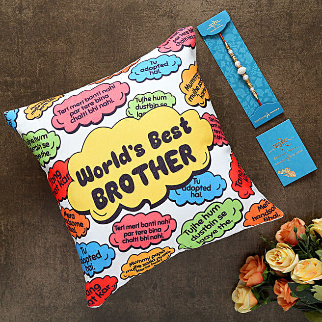 White Pearl Rakhi And Worlds Best Brother Cushion