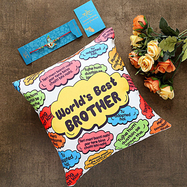 Bal Krishna Kids Rakhi And Worlds Best Brother Cushion