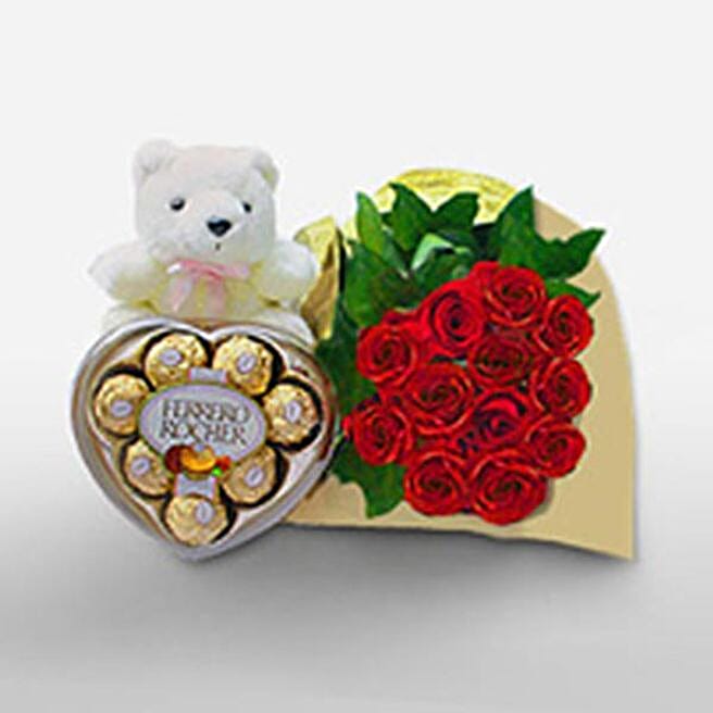 Rose Bunch With Teddy And Chocolates