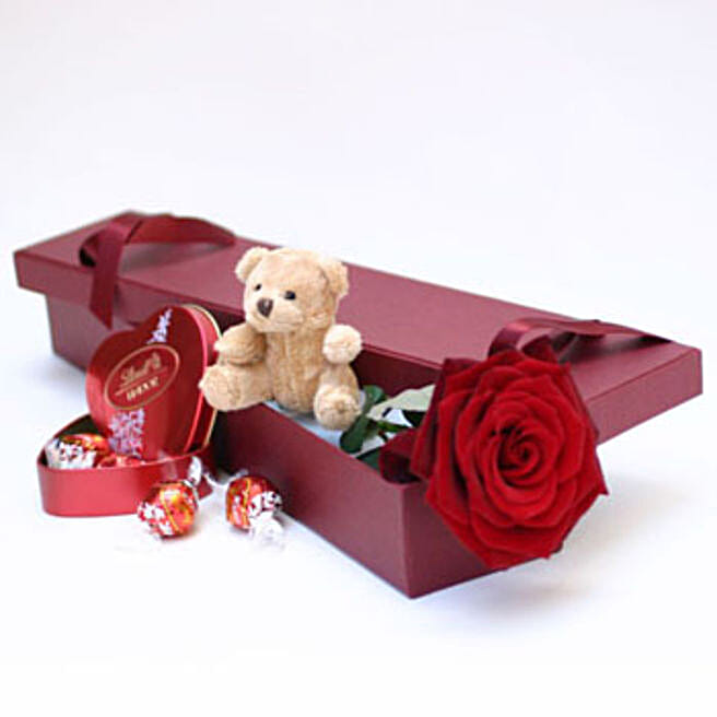 Teddy Bear Keyring With Rose And Chocolate Truffles