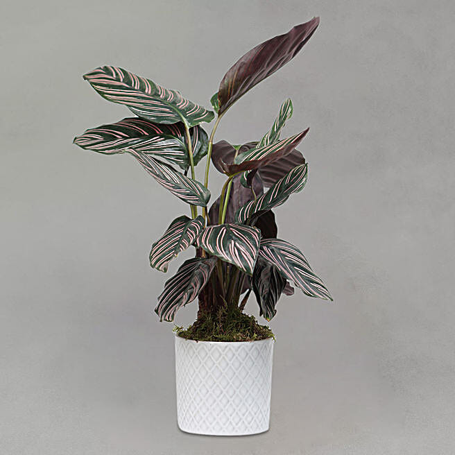 Calathea Sanderiana Plant White Pot