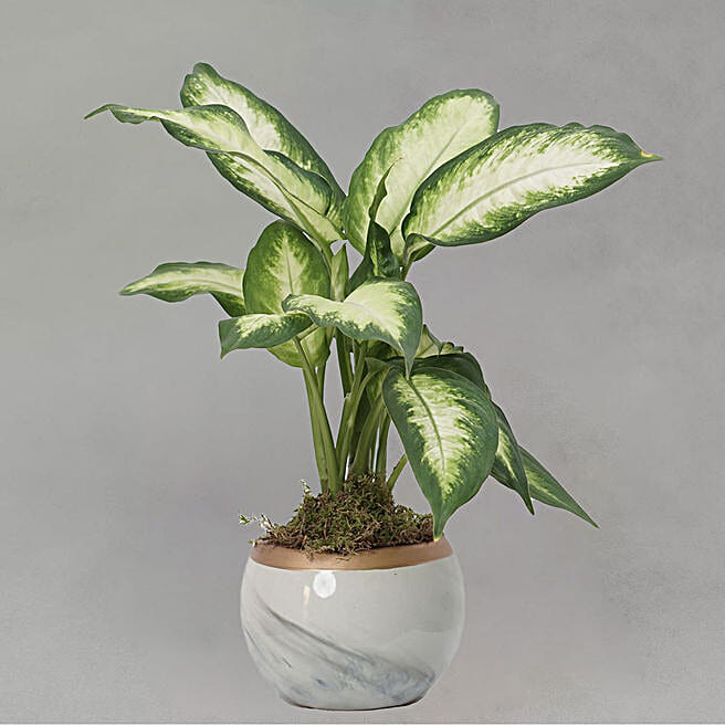 Dieffenbachia Camillia Plant Grey Pot
