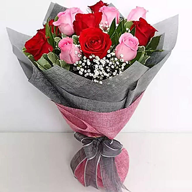 6 Pink And 6 Red Roses Bunch