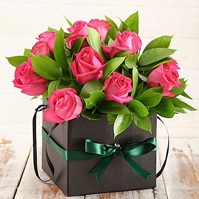 Pink Roses In Black Box