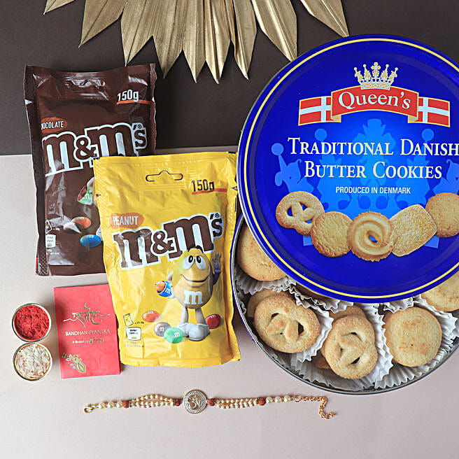 Sneh Exquisite Pearl Om Rakhi & Cookies Hamper