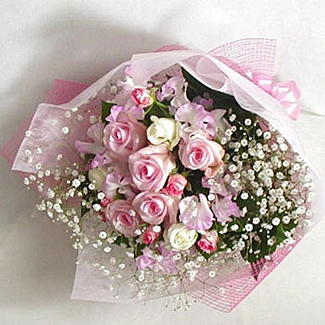 Refreshing White And Pink Roses Bouquet