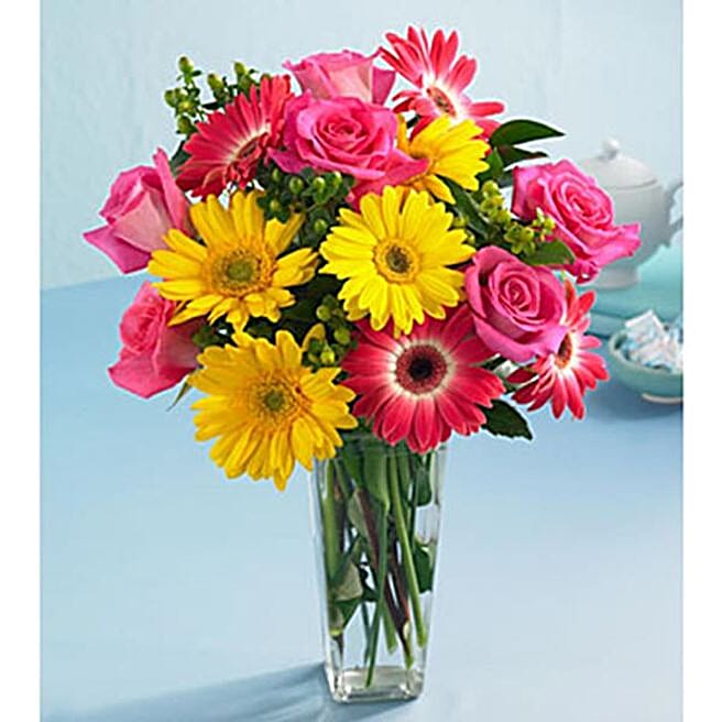 Roses And Gerberas Vase Arrangement