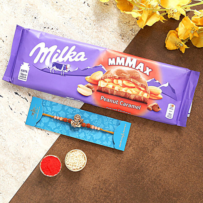 Hanuman Rudraksha Rakhi And Milka Peanut Chocolates