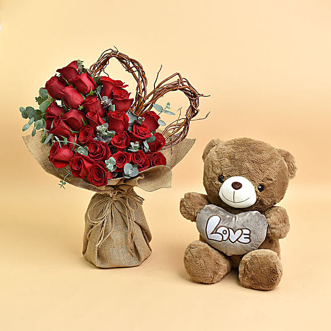 Heart and Roses Bouquet and Teddy