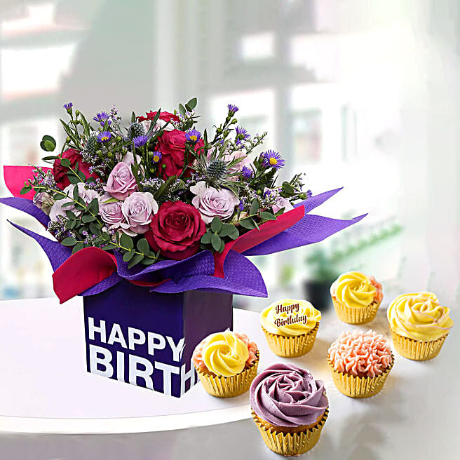 Mixed Flowers With Cup Cakes