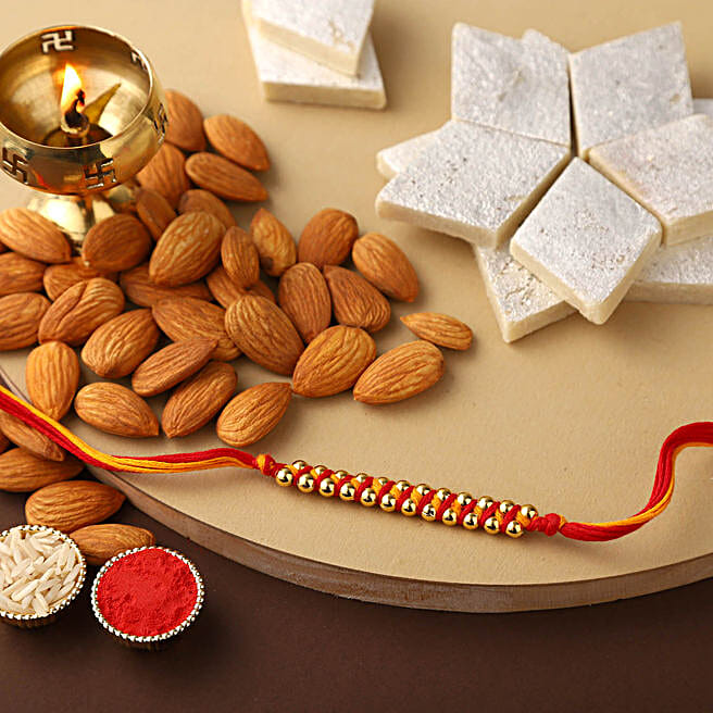 Sneh Gold Mauli Rakhi with 250 Grams Kaju katli and Almonds