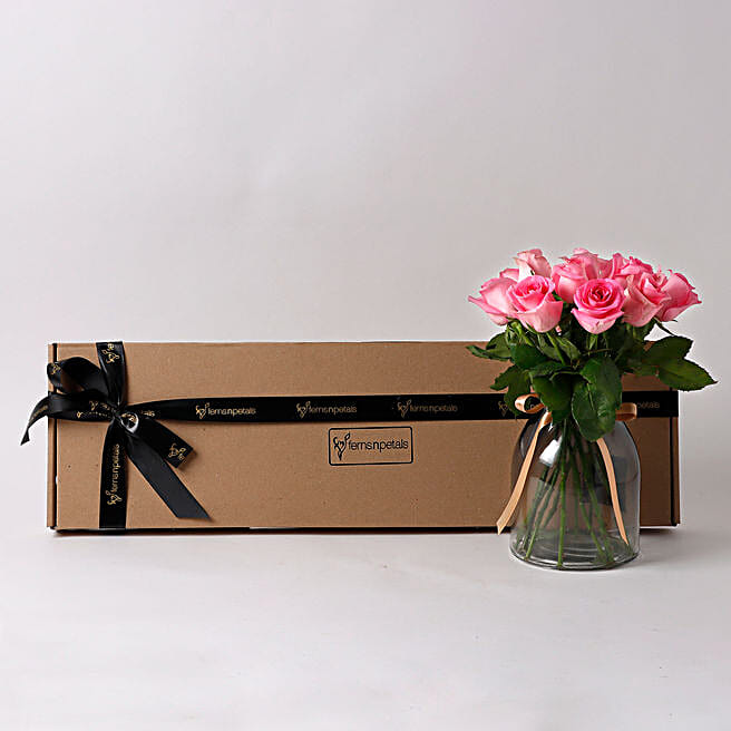 Elegant 10 Pink Roses Letter Box