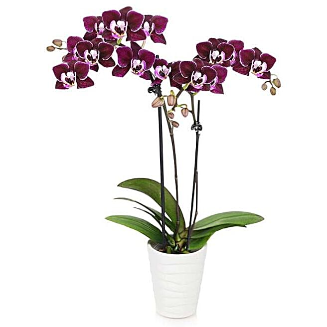 Alluring Purple Orchid Plant In White Planter