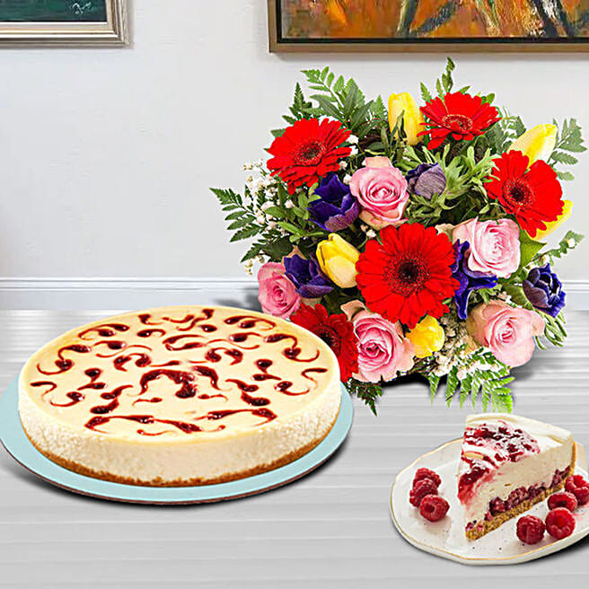 Berries Cheesecake With Colourful Flowers