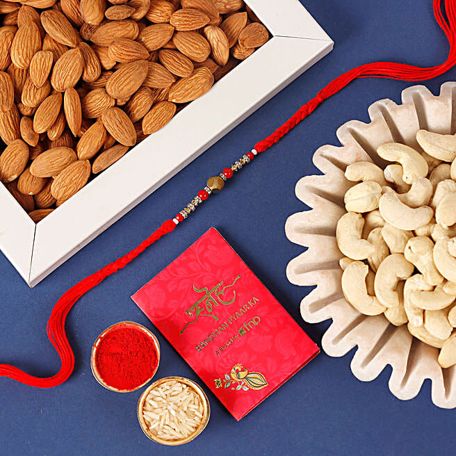 Colourful Beads Designer Rakhi With Almonds & Cashews