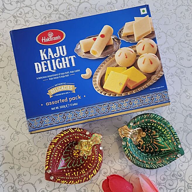Diwali Wishes Designer Diyas & Sweets Combo